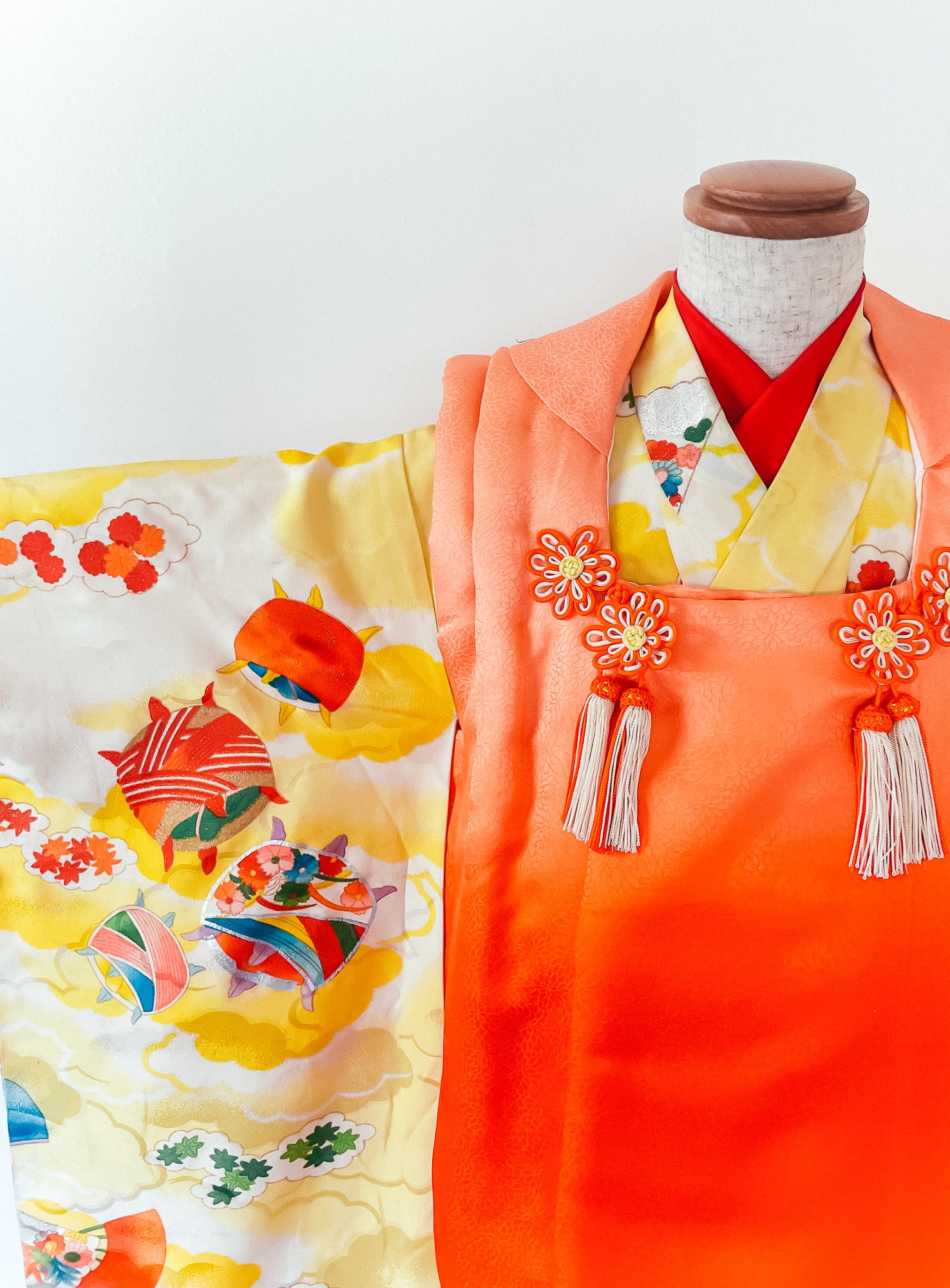 ・腰上げを施しておりませんので、お子さまの身長に合わせてお着付けにてご調整が可能です。
